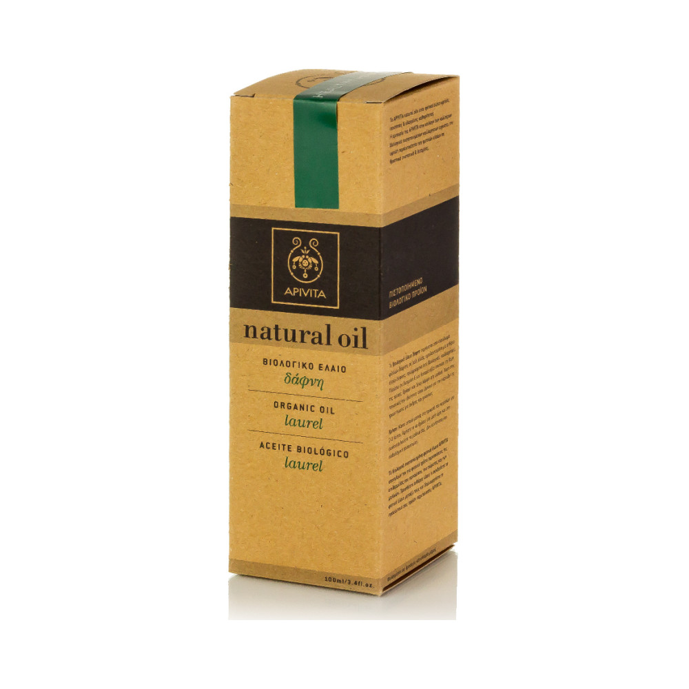 Βιολογικό έλαιο δάφνης που παράγεται από εκχύλισμα φύλλων δάφνης σε λάδι ελιάς, εμπλουτισμένο με αιθέριο έλαιο δάφνης, προερχόμενα από βιολογικές καλλιέργειες.